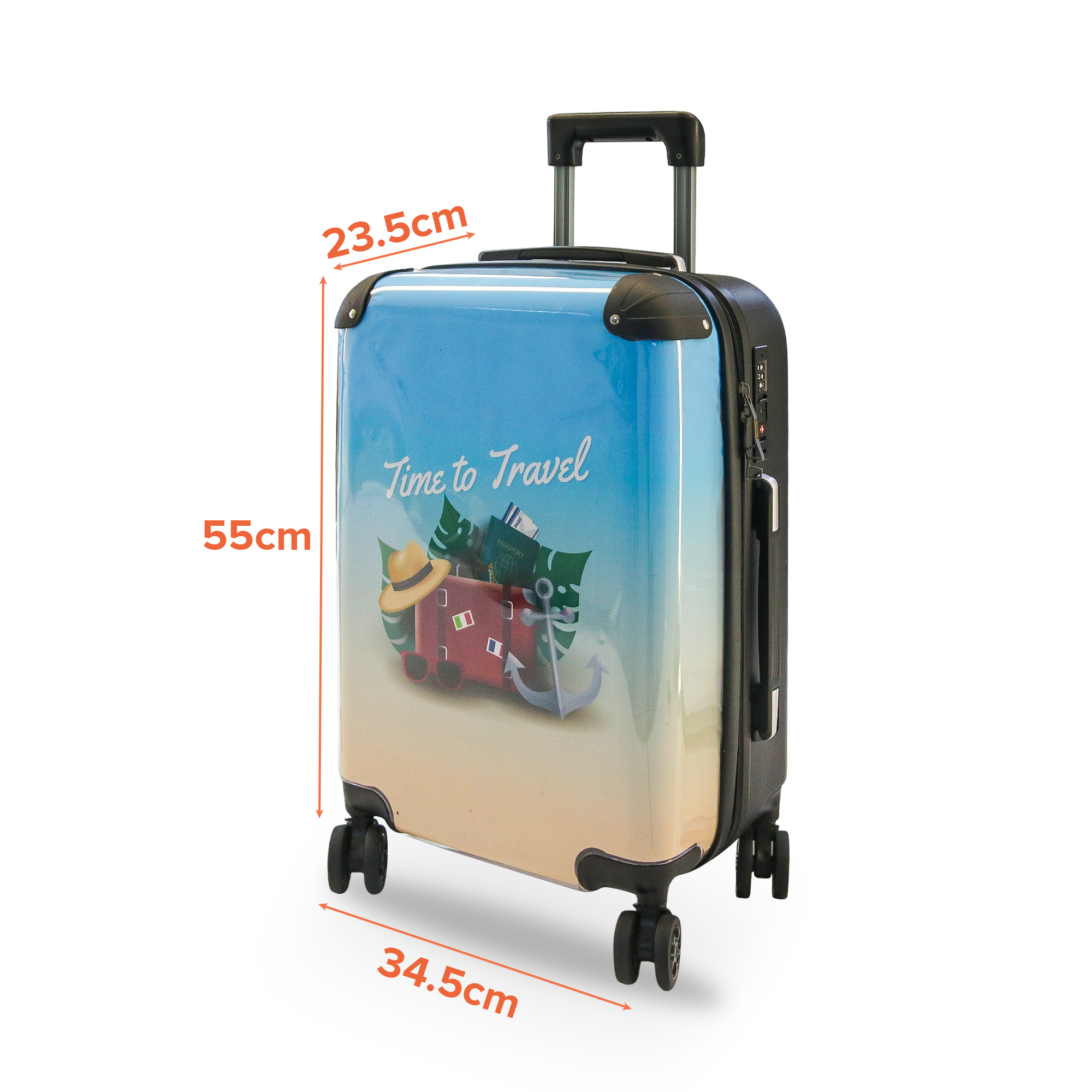 Get amazing brand exposure while travelling, with our Custom Insert Suitcase. The front of the Custom Insert Suitcase is a transparent shell, with a near full side sized panel being able to be inserted, to achieve amazing brand exposure. It is mainly composed of ABS and PC materials, equipped with 4 silent universal wheels, which effectively reduces noise during use, and can be rotated or pushed horizontally easily and comfortably. The Custom Insert Suitcase comes in a 20 inch size. A great way to get your branding seen on your next trip.