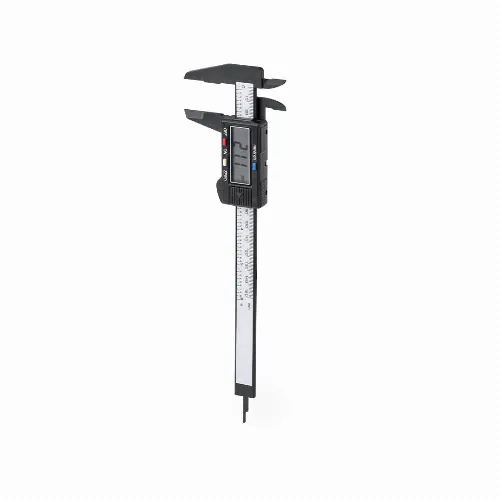 With LCD display and ON/OFF buttons, ZERO for adjustment and another one to select the mm or inches. Includes probe for measuring depth and calipers for measuring the inside of objects. Measuring range up to 150 mm, with instructions in English and Spanish and presented in an individual kraft design box.