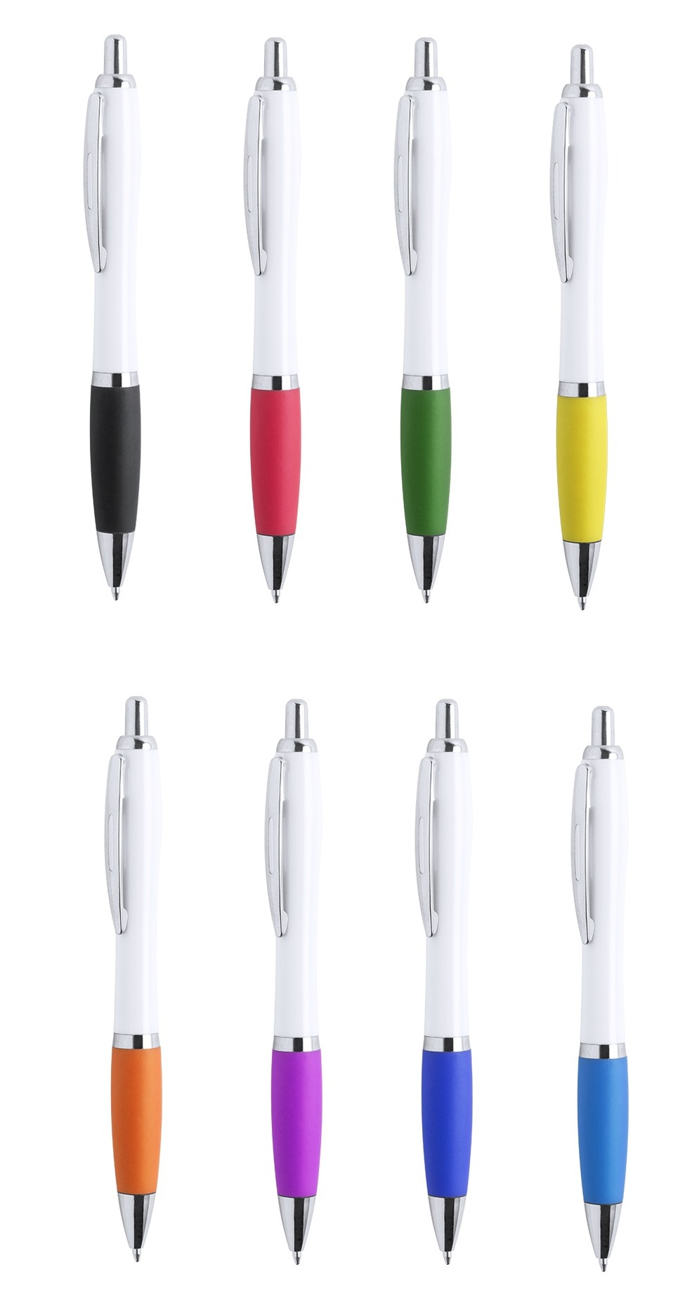 Ball pen in a vivid, bicolor design, with body in white color and grip in a wide range of eye-catching colors.