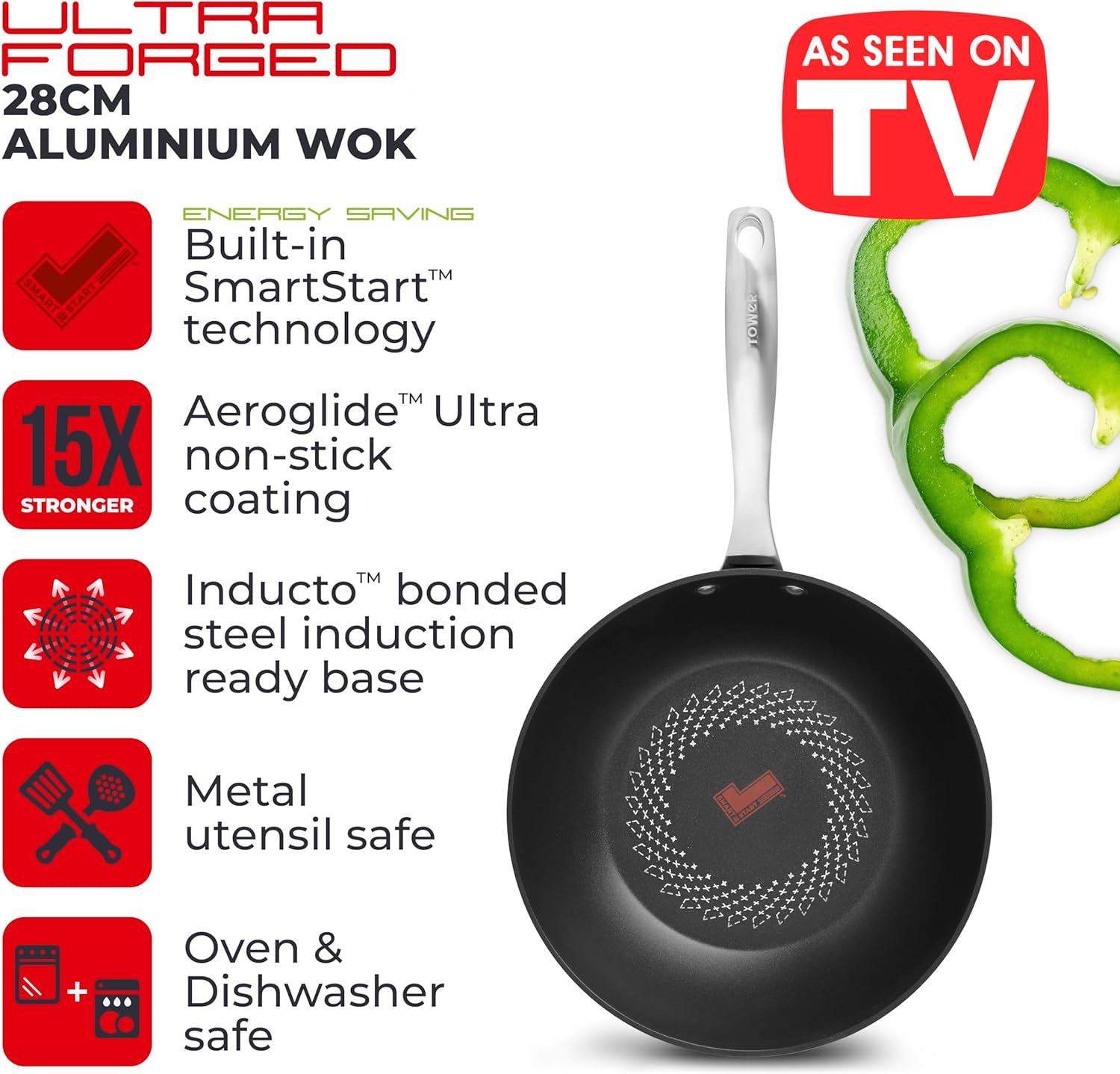 Tower SmartStart Ultra Forged 28cm Aluminium Wok